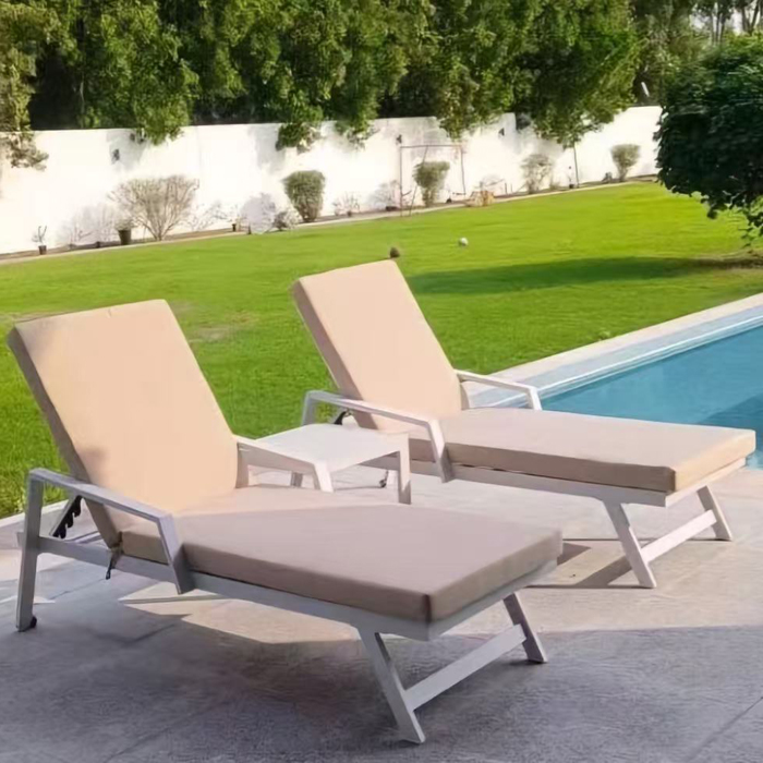 Features reinforced stabilizing legs with flexible legs which enhance stability and security. Ideal for sunbathing with a loved one in the garden with drinks and snacks. The great style addition to this set is the reclining loungers that can be adjusted to multiple positions allowing you to fully unwind and relax.