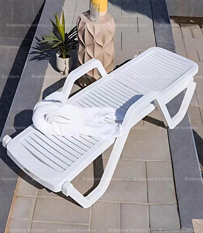 Enjoy the perfect blend of comfort and durability with this Heavy-Duty Plastic Sun Lounger, designed for luxury outdoor relaxation. Whether by the pool, on the beach, or at a resort, this lounger provides exceptional comfort with its adjustable reclining backrest and built-in armrests.